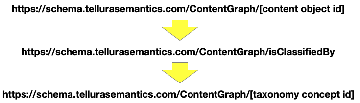 A SKOS Concept extends the functionality of a simple keyword considerably, by providing a URI, object and data properties and, most importantly here, the ability to create graph-based linked data by virtue of classification of content objects with a predicate, all derived from a content model. In technical terms we would have a triple that looks like this: